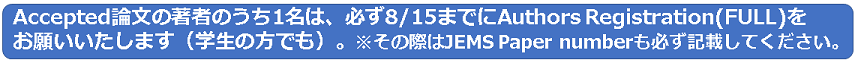 - For Authors Registration, JEMS Paper number (e.g. 110000) must be provided.