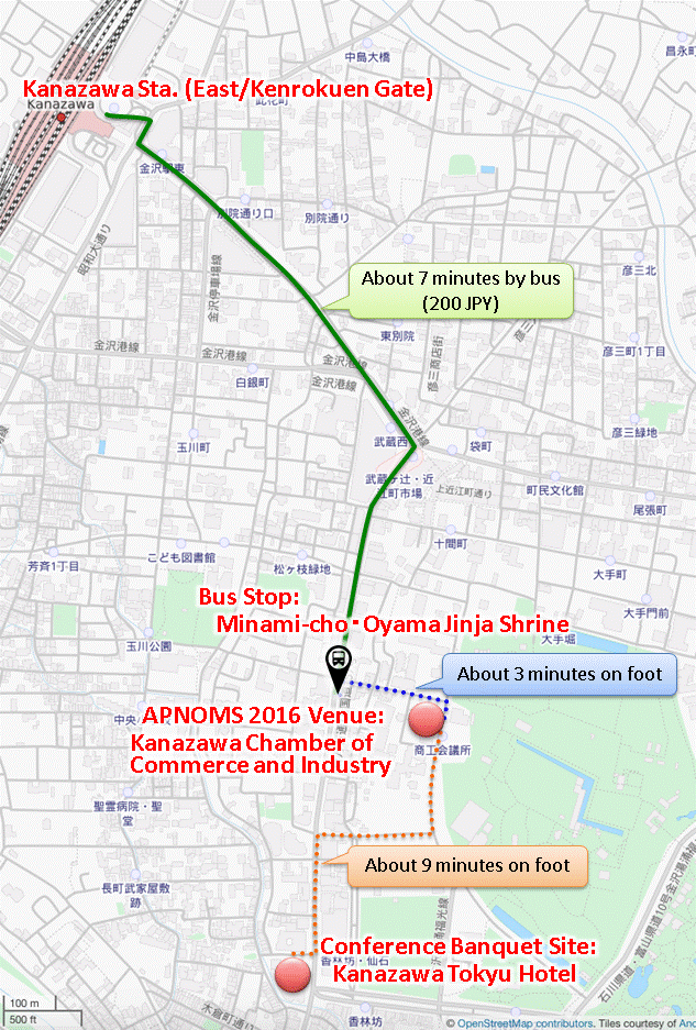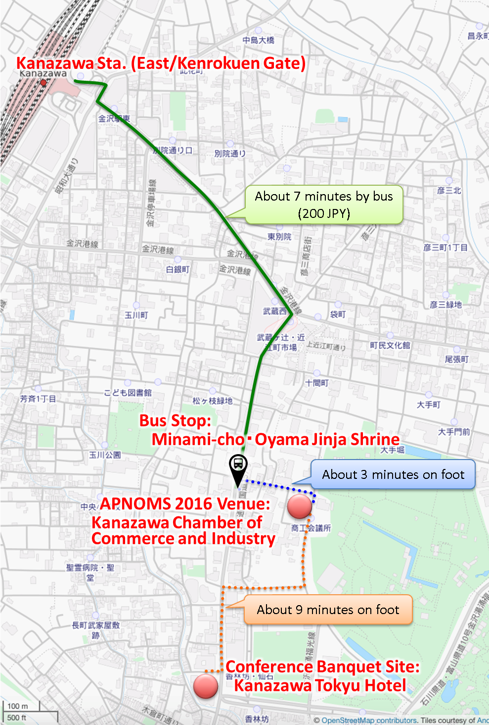 The nearest bus stop from venue is "Minami-cho · Oyama Jinja Shrine ".